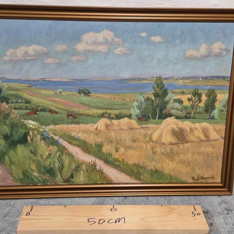 Maleriet måler 67cm i højden og 77cm i længden uden ramme
