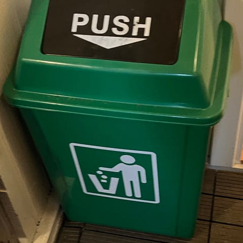 Skraldespanden er fra dropbucket.com og modellen hedder REFLECT75 – Madaffald