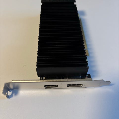 MSI GeForce GT 730 grafikkort med passiv køling. Grafikkortet har lavt støjniveau og er velegnet til systemer, hvor lydniveau er vigtigt. Kortet er sort og hvidt og passer til standard PCIe-slot.