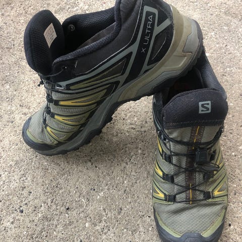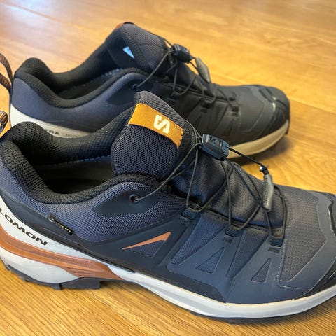 Salomon X ULTRA 4 vandresko i størrelse 44, sort farve. Er som nye, har gået under 10 km hvorefter jeg kunne konstatere de var en anelse for små til mig. Nyprisen var 1.200 kr. i foråret og nu har de stået længe nok i skabet, så du kan hente dem for halvdelen.
