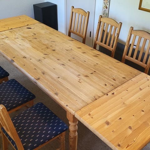 Flot og solidt spisebordssæt i dejligt FYRRETRÆ