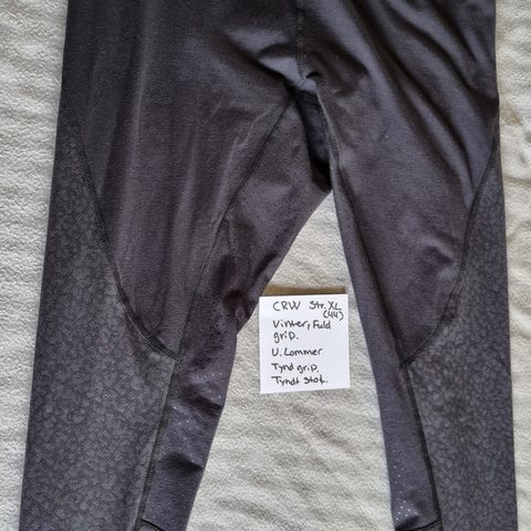 Ridetights CRW reflective str xl (44) med lynlåslomme i lænd. Reflekser på ben og lår. Fuldgrip, der ikke er særlig kraftigt, men man sidder fint med dem alligevel. Sorte.