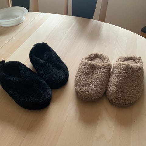 Helt nye hjemmesko str. 38 / 39. Sorte, med fast sål. Kommer fra et røgfrit hjem. Pris: 65 kr. pr. par.