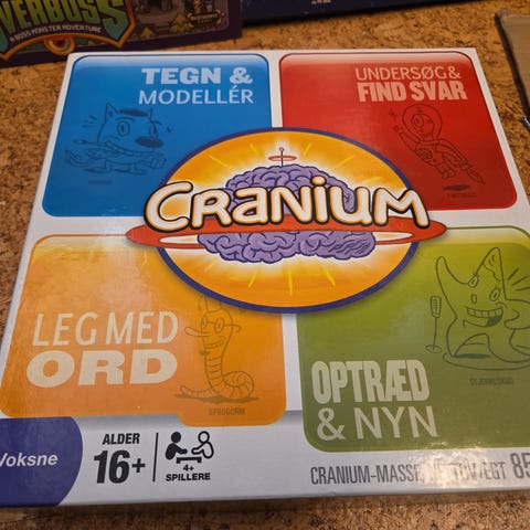 Cranium Familieudgave brætspil med forskellige spilmoduler og kort. Indeholder spil som Skabekat, Faktomaut, Stjerneskud og Sprogorm. Velegnet til familier med børn fra 8 år og opefter. Spillet fremmer samarbejde og kreativitet gennem forskellige udfordringer og aktiviteter.