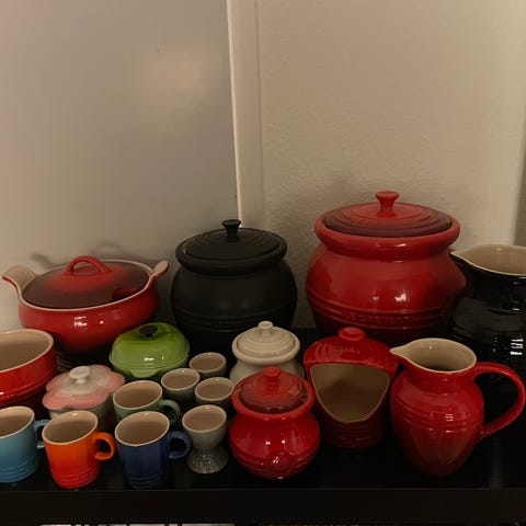 Le creuset potter, CERISE. pander, gryder, stegeso, hvad mangler du?