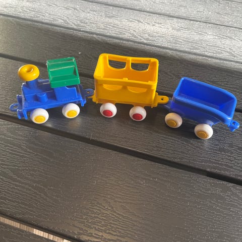 Libero tog.. meget blødt., fint lille tog.. man kan putte forskelligt i oppefra... se bl.a. den første vogn... sådan kan de andre vogne også trykkes ned og noget kan sættes i.. ELLER BARE BRUGE DET SOM KRAMMEDYR..