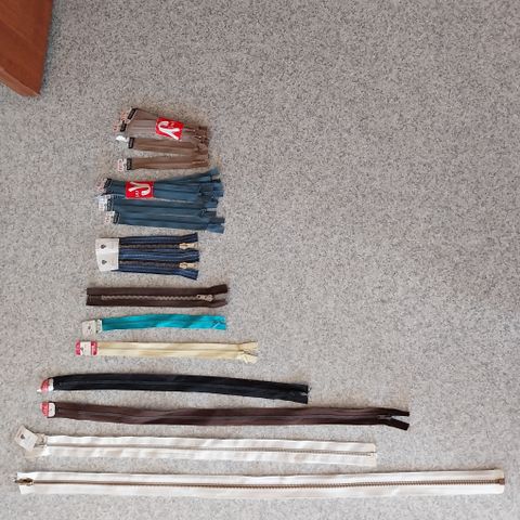Sæt med lynlåse i forskellige farver (sort, rød, brun, pink) og metal lynlåse træk i guld og sølv. Indeholder også metal lynlåse stoppe og skruer i guld og sølv. Materiale: metal og tekstil. Anvendelse: til reparation eller udskiftning af lynlåse på tøj, tasker eller lignende.