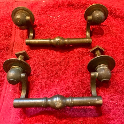 Flotte, originale vintage messinggreb med dekorativt mønster.