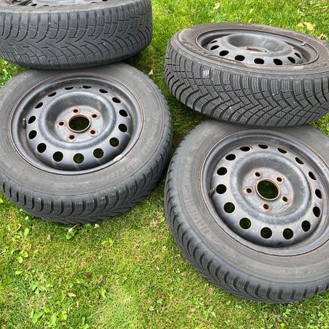Har siddet på en Kia Venga årg. 2010. 5 huller, 3 af dækkene er ok og en er lidt bob bob. Men kan måske bruges en vinter mere.
