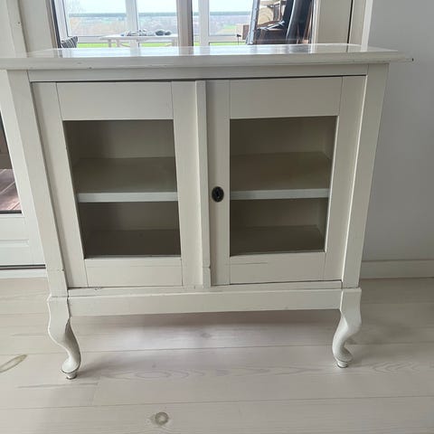 Smuk hvid malet skænk med flotte detaljer .