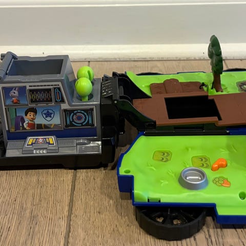 Paw patrol mission legetøj . Det kan spændes omkring håndled på barnet . Man sætter De forskellige kort i og den er klar til mission . Den siger forskellige lyde og ting . Den er brugt meget meget lidt og fremstår som ny . Det sælges