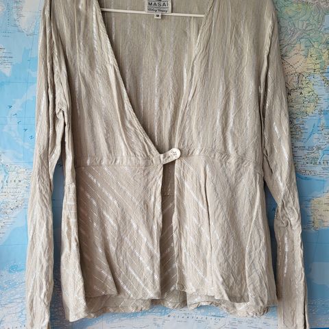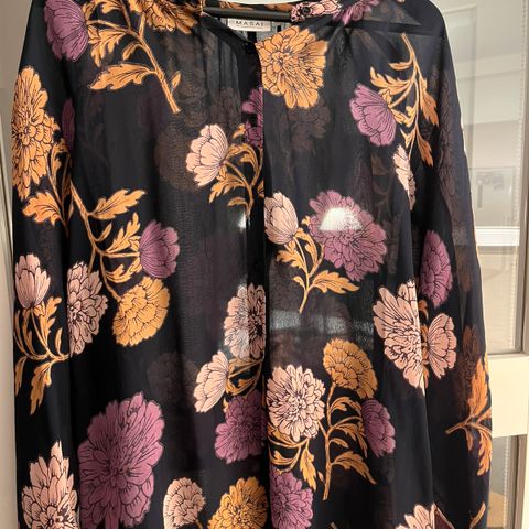 Masai lang skjorte eller tunika i sort bomuld med hvide stikninger.