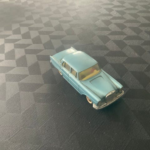 Super flot bil, der ikke har været leget med. Den har stadig den originale seddel om, at det er et samlerobjekt. Den er i str. 1:50, ca. 10 cm. lang og har ingen brugsspor. Æsken er fin, med alle flapper og med lidt brugsspor.