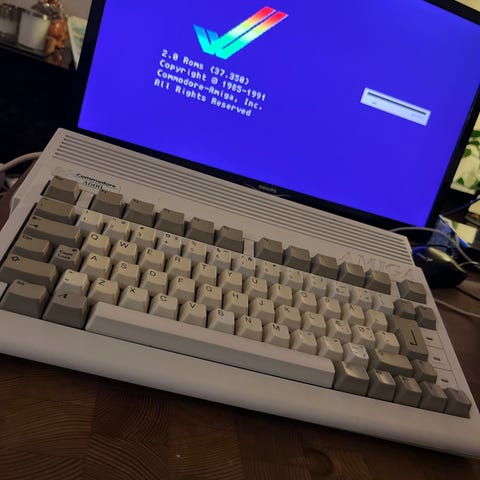 Amiga 500, samt mus, joysticks og ekstra ekstern diskettestation