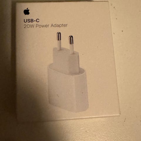 Apple USB-C 20W Oplader i hvid farve. Kompatibel med USB-C enheder, designet til at levere 20 watt effekt til opladning af kompatible Apple-produkter.
