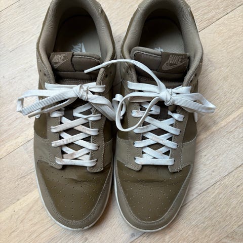 Nike Dunk Low Sneakers i størrelse 44. Farverne er blå og hvid. Skoene er designet til hverdagsbrug og har en gummisål med mønster for bedre greb.