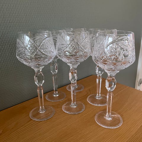 Meget smukke krystalglas, 20,5 cm høje og kummen måler 6,8 cm øverst.