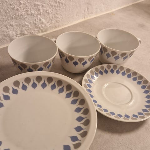 Lyngby Danild sæt med kop, underkop og kagetallerken