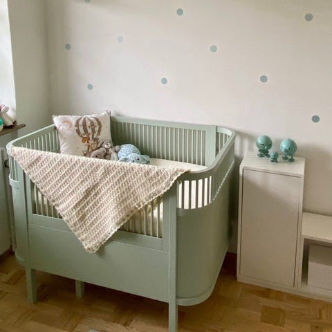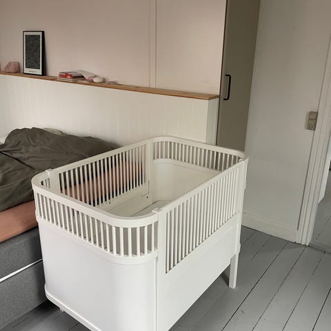 Sebra seng i hvid med justerbar bund og udtræk som gør at barnet kan vokse med sengen. Träumeland Luksus Madras til begge længder medfølger samt sider.