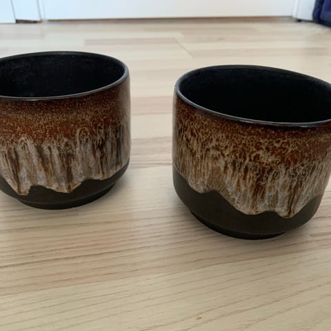 Brun glaseret keramik urtepotte 11 cm høj 15 cm ø