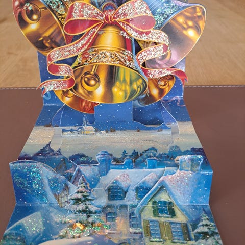 Julekort ... Pop-up Kort Med Glimmer + Kuvert