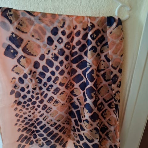 Whiite tørklæde/sjal i lyserød farve lavet af 55% silke og 45% uld. Størrelse: One size. Tørklædet har et mønster med cirkler og er velegnet til kvinder.