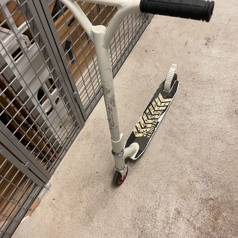 Løbehjul gives væk - det larmer (rasler) når man kører det og boksen (til batteri) i toppen gør det ustabilt ifølge børnene. Måske vil nogen bruge hjulene som reservedele eller lignende?