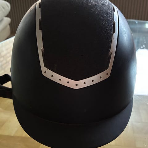 Sort ridehjelm str 56, brugt få gange. Justerbar stroppe for bedre pasform.