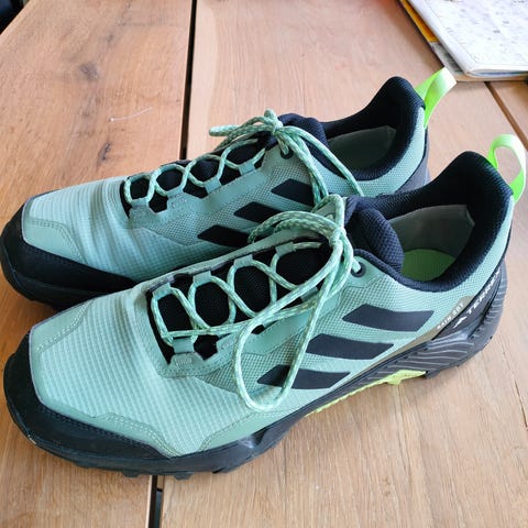 Adidas Terrex vandresko i størrelse 40 og 41 1/3 lys grøn farve. Skoene er designet til vandring og løb med slidstærk sål og åndbart materiale, egnet til udendørs brug.