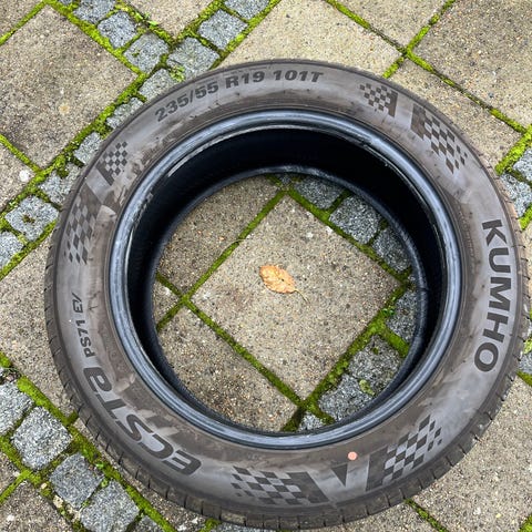 Kumho Ecsta PS71 EV sommerdæk 235/55/R19 101T. Har kun kørt 1500 km. Produceret 15-2025. Har siddet på fabriksny Skoda Elroq, som har fået helårsdæk. 650 kr. pr. stk.