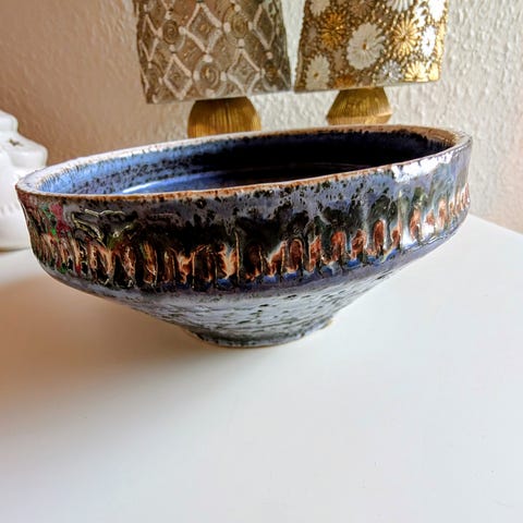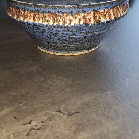 Stor Inger Folmer-Larsen af Kingo Keramik Denmark Studiokeramik skål 1970'ernes dansk moderne stentøjs kunst.