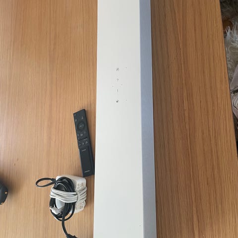 Jeg har fået lov til at sætte mine gulvhøjtalere til tv'et, så jeg har solgt min Soundbar og har derfor heller ikke længere brug for beslaget. Rigtig god stand.