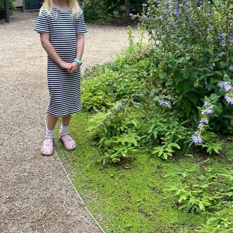 Stribet sort & hvid lang bomulds kjole fra Mono str 14