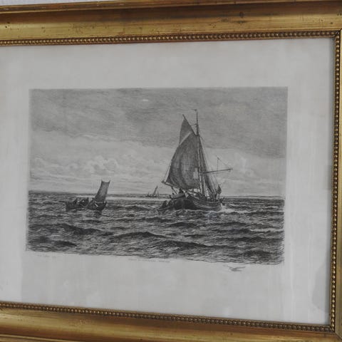 Signatur anes under radering til højre, til venstre anes Skagen og et årstal. Desuden står der Carl Locher skrevet med blyant nederst i højre hjørne.