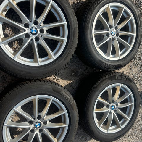 Original BMW vinterfælge model V-Speiche 618 med RDC dæktryk sensor, 7,5 x 17", ET27, monteret med Continental WinterContact TS 850 3PMSF vinderæk med mønster dybde på 6-7 mm