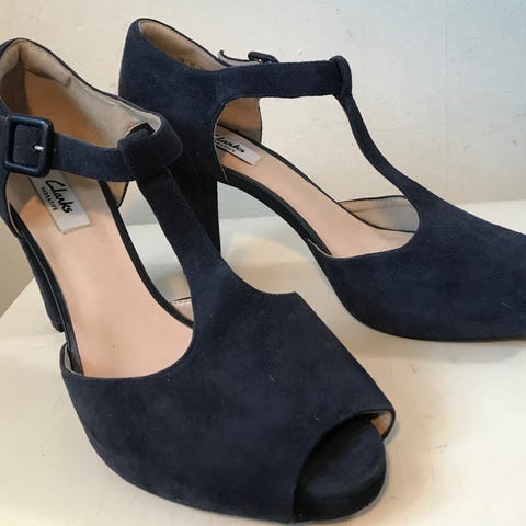 Pumps, str. 38,5, Clarks, Sort, Læder, Ubrugt, Lækre Clarks heels. 9 cm hæl, 1,5 cm plateau. Behagelig pasform med skridsikker sål og aflastende puder indvendigt. Er mærket med str UK str 6,5 / 39 men er lidt lille i str, nærmere en 38-38,5.