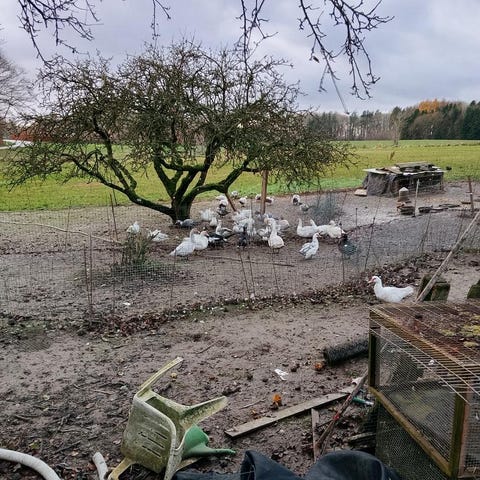 Muskusænder fra i sommer, stor kraftig ren race, ideel til slagtning eller videre avl. Forældre større end normalt og megen vægt ved slagtning, ænderne er i god foderstand og i god kondition