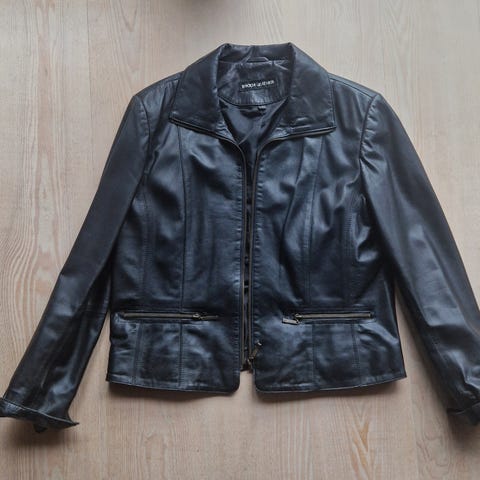 Lækker jakke i blødt skind. Enkelte pletter der ikke er forsøgt fjernet. Derfor prisen