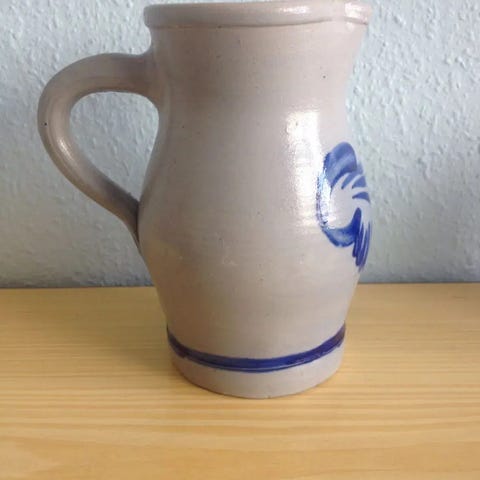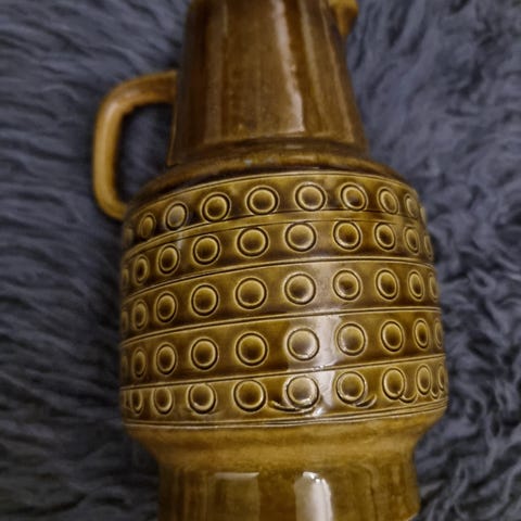 Højden er 14,5 cm, diameteren på det tykkeste sted er 10,5 cm og indvendig diameter i kandens åbning er 7 cm.