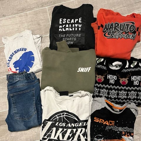 Jeg har 2 store flyttekasser med rigtig fint drengetøj fra 1-12 år. Meget af tøjet er der stadig prismærker på, Resten af tøjet er max brugt 1-2 gange.