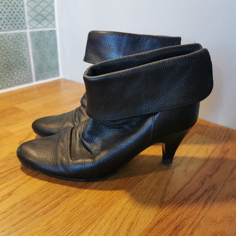 Støvler, str. 38, Logo 69, brun, læder skind, Flotte brune læder støvler fra logo 69 der enten ka bruges som overknees el cuff stil ,røde såler,høje hæle str 38....tidløse støvler,fashion boots.. rød sål lårlange otk sender gerne men køber betaler porto