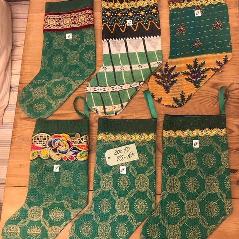 Håndsyede jule💗r og jule Spidsflag 🔻af indisk bomulds kanthaquilt 🎄Priser og mål står på varerne!💗