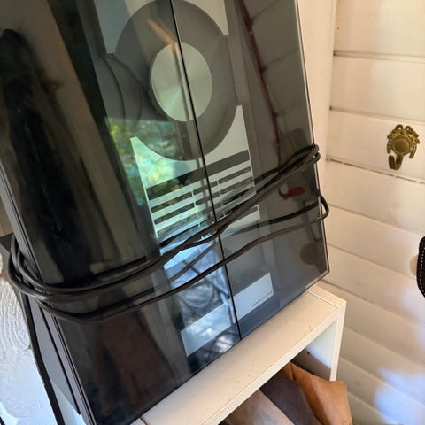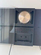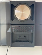 Ældre Bang & Olufsen anlæg med radio, cd-afspiller og kassettebånd afspiller.