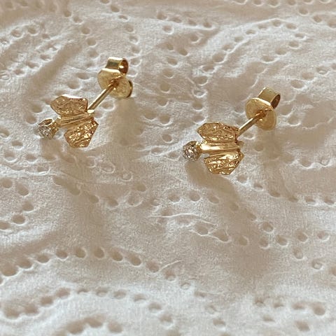 Prinsesseørestikkere, brilliant 14 karat, verificeret ved guldsmed i år, der vurderer nypris til ca. 5.500 kr. Seriøse bud modtages.