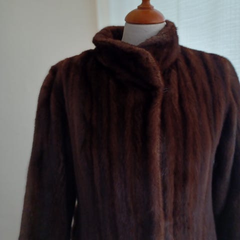 Super fin mink jakke i en smuk dyb brun farve. Jakken er let og kort i meget fin kvalitet. Jakken er brugt meget lidt og uden brugsspor.. Jakken er fra Olsson ( se foto).