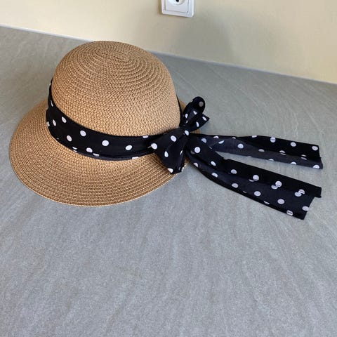 NY - Stor stråhat / sommerhat i beige med guldkant: