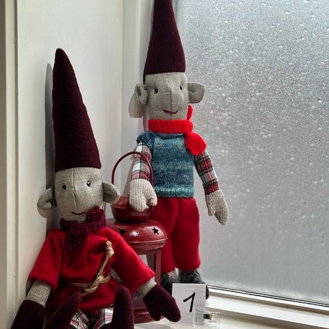 Håndlavede søde nisser , 45 cm høje, alle forskellige og sælger parvis for 200kr pr. par. Sender gerne + porto. Herning området