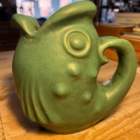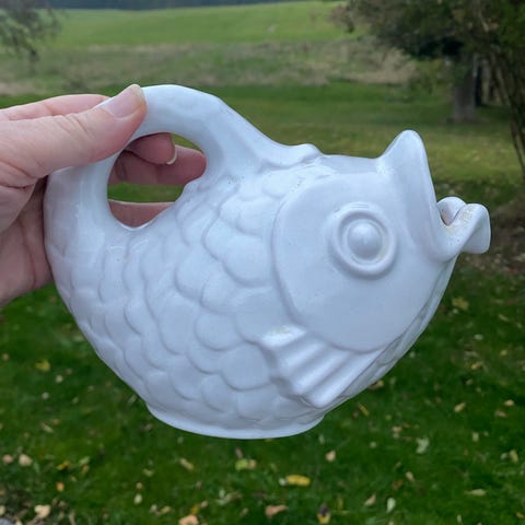 Michael Andersen fiskekande i grå/brun meleret glasur
