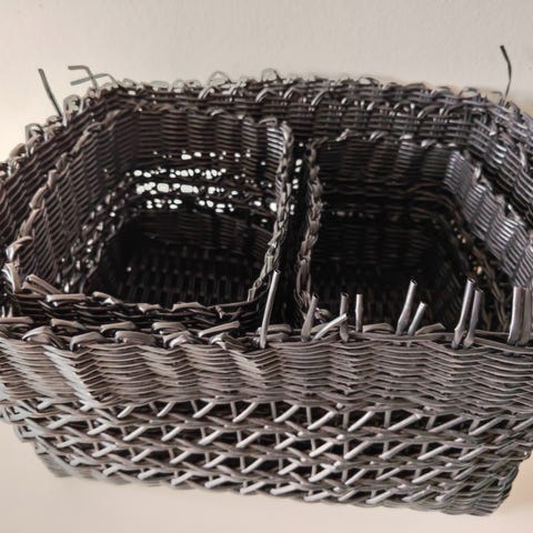 5 dele - hvide flettede opbevaringskurve i plastik i forskellige størrelser