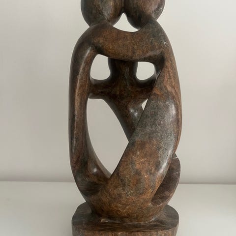 Skulptur udført i hvid sten. Velegnet som dekorativt element til indendørs brug.